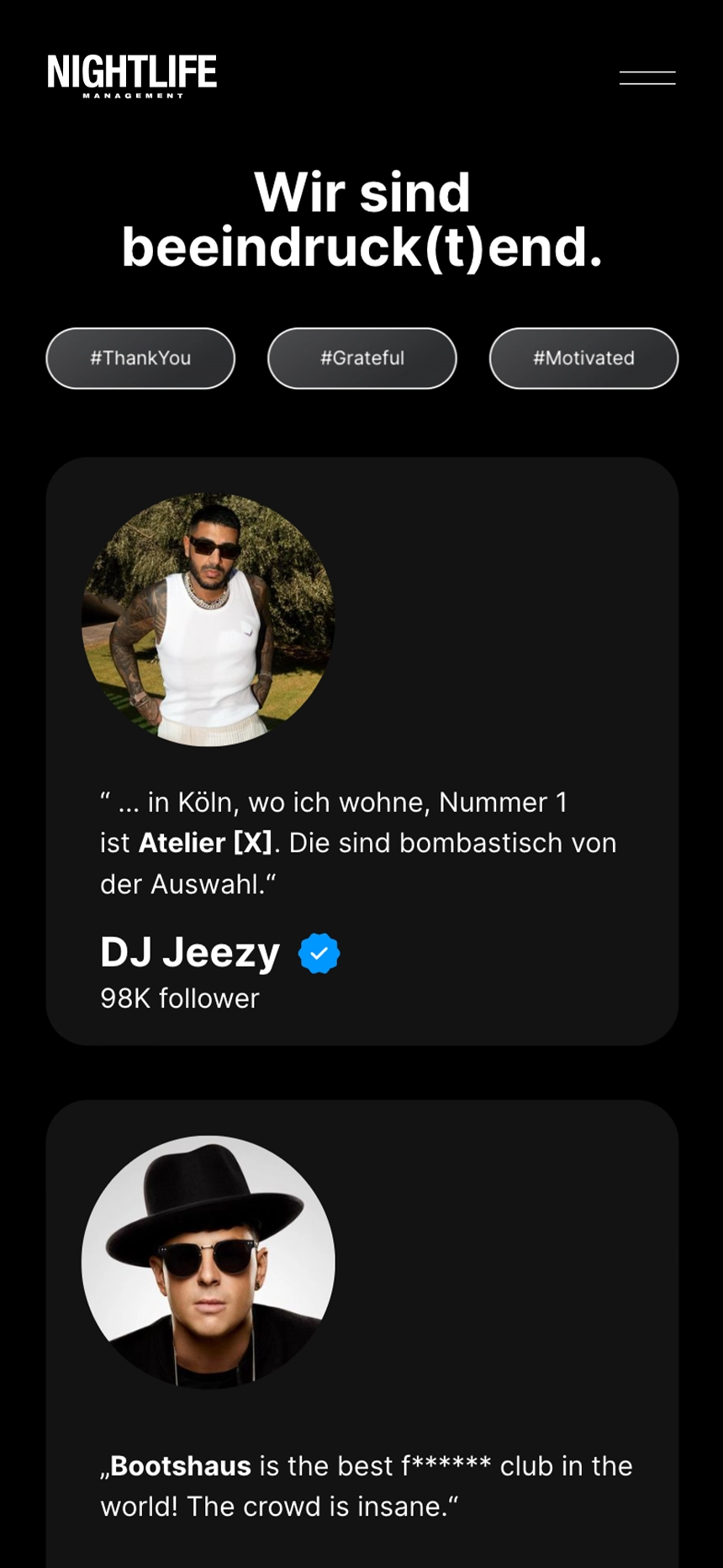 Ziel war es, genau diese Position sichtbar zu machen und strategisch zu schärfen. Gemeinsam mit dem Marketing-Team der Nightlife Management GmbH und der Bootshaus Cologne GmbH habe ich Konzept, Design und Umsetzung verantwortet. Eng abgestimmt, fokussiert auf Klarheit.